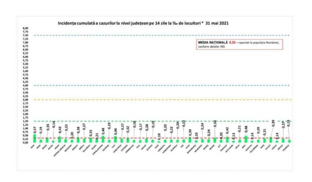 Coeficientul infectărilor cumulate la 14 zile, raportate la 1.000 de locuitori este calculat de către Direcțiile de Sănătate Publică, la nivelul Municipiului București și al județelor. Mai jos aveți graficul realizat în baza raportărilor primite de CNCCI de la Direcțiile de Sănătate Publică:
