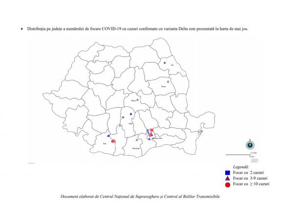 În acest moment nu există evidențe de transmitere comunitară susținută, la nivel național, a variantei Delta.