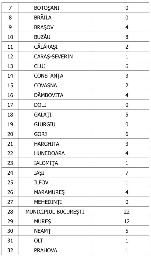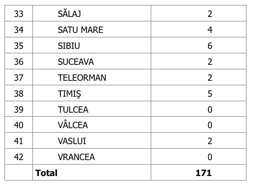 În ultimele 24 de ore, au fost raportate de către INSP 89 de decese (47 de bărbați și 42 de femei), din care 10 anterioare intervalului de referință, ale unor pacienți infectați cu noul coronavirus, internați în spitalele din Alba, Arad, Bacău, Bihor, Bistrița-Năsăud, Brașov, Călărași, Cluj, Constanța, Covasna, Dâmbovița, Dolj, Gorj, Harghita, Ialomița, Maramureș, Mehedinți, Mureș, Neamț, Satu Mare, Sibiu, Teleorman, Timiș, Vaslui, Vâlcea și Municipiul București.