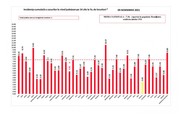Bilanț COVID-19 din 10 noiembrie 2021, în România. Distribuția pe județe