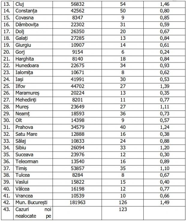 În ultimele 24 de ore au fost efectuate 23.023 de teste RT-PCR (12.769 în baza definiției de caz și a protocolului medical și 10.254 la cerere) și 13.172 de teste rapide antigenice.