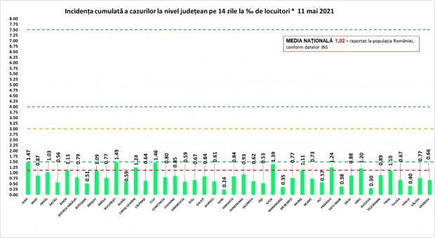 "Până astăzi, 11 mai, pe teritoriul României, au fost confirmate 1.067.887 de cazuri de persoane infectate cu noul coronavirus (COVID – 19). 1.017.047 de pacienți au fost declarați vindecați.