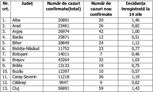 În ultimele 24 de ore au fost efectuate 24.307 teste RT-PCR (14.910 în baza definiției de caz și a protocolului medical și 9.397 la cerere) și 10.236 de teste rapide antigenice.