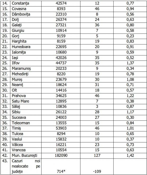 În urma testelor efectuate la nivel național, față de ultima raportare, au fost înregistrate 930 cazuri noi de persoane infectate cu SARS – CoV – 2 (COVID – 19), acestea fiind cazuri care nu au mai avut anterior un test pozitiv.