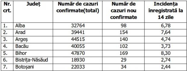 Au fost raportate 19 decese anterioare intervalului de referință, survenite în județele Galați, Giurgiu, Gorj, Iași, Sălaj, Tulcea și Vaslui în lunile octombrie 2021 și noiembrie 2021.