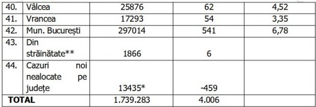Până la această dată, la nivel național, au fost prelucrate 10.524.829 teste RT-PCR și 4.886.249 de teste rapide antigenice.