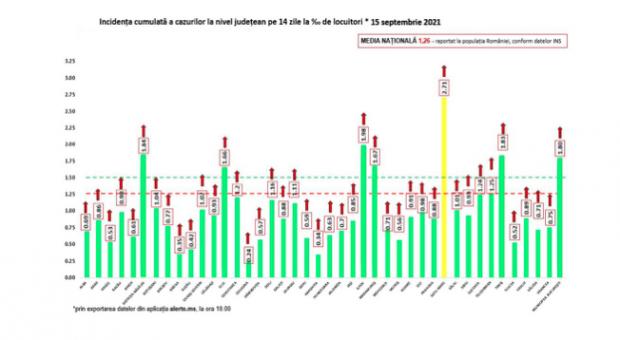 Bilanț COVID-19 din 15 septembrie 2021, în România. Distribuția pe județe