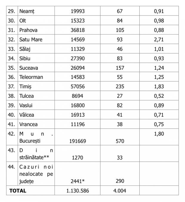 În urma testelor efectuate la nivel național, față de ultima raportare, au fost înregistrate 4.004 cazuri noi de persoane infectate cu SARS – CoV – 2 (COVID – 19), acestea fiind cazuri care nu au mai avut anterior un test pozitiv.