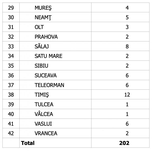 Au fost raportate 8 decese anterioare intervalului de referință, survenite în județele Arad, Bacău, Gorj, înregistrate în lunile octombrie și noiembrie 2021. În intervalul de referință au fost raportate 56 de decese.