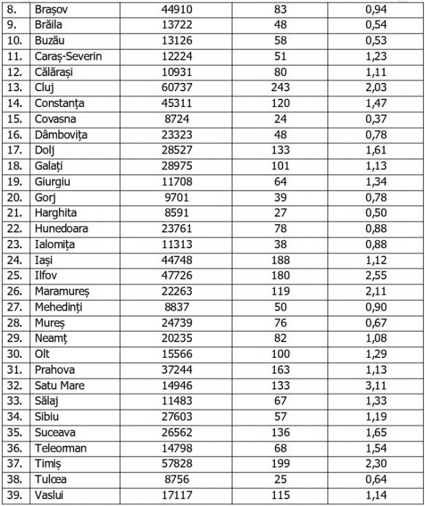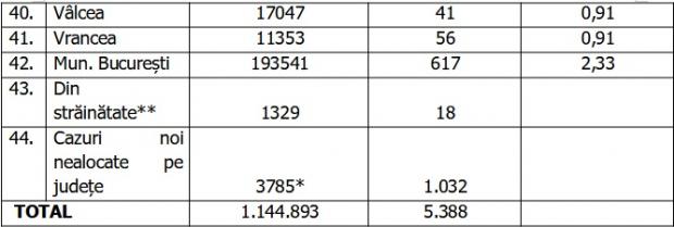 Din totalul pacienților internați, 178 sunt minori, 162 fiind internați în secții și 16 la ATI. Până la această dată, la nivel național, au fost prelucrate 9.374.307 teste RT-PCR și 2.849.358 de teste rapide antigenice.