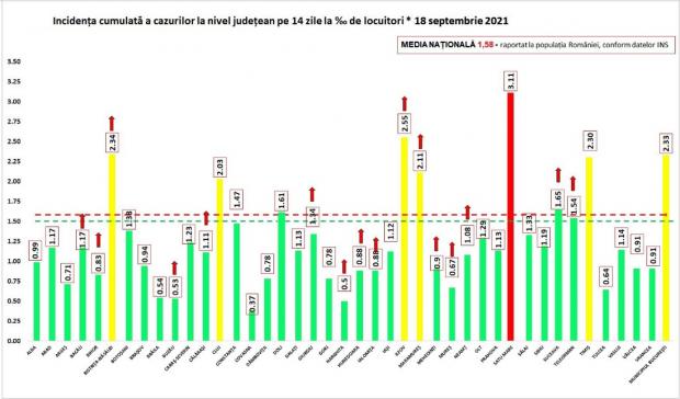 Bilanţ COVID-19 din 18 septembrie 2021. 97 de decese în ultimele 24 de ore