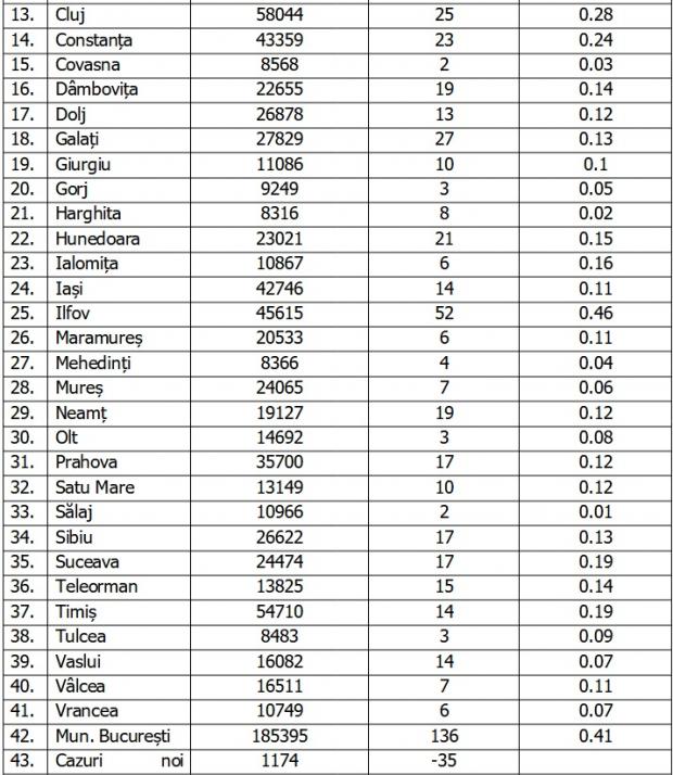 În ultimele 24 de ore au fost efectuate 14.035 de teste RT-PCR (5.812 în baza definiției de caz și a protocolului medical și 8.223 la cerere) și 18.673 de teste rapide antigenice.