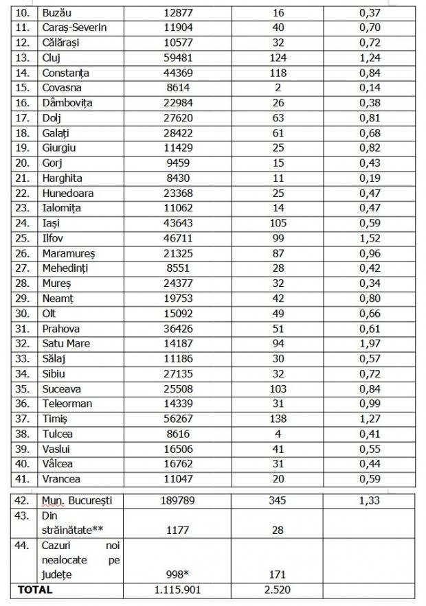 Până astăzi, 10 septembrie, pe teritoriul României au fost confirmate 1.115.901 cazuri de persoane infectate cu noul coronavirus (COVID – 19).