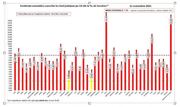 În intervalul 10.10.2021 (10:00) – 11.10.2021 (10:00) au fost raportate de către INSP 209 decese (96 bărbați și 113 femei), ale unor pacienți infectați cu noul coronavirus, internați în spitalele din Alba, Arad, Argeș, Bacău, Bihor, Brăila, Botoșani, Brașov, Buzău, Caraș-Severin, Călărași, Cluj, Constanța, Dolj, Giurgiu, Gorj, Harghita, Hunedoara, Maramureș, Mehedinți, Neamț, Olt, Prahova, Satu Mare, Sălaj, Sibiu, Suceava, Teleorman, Timiș, Vaslui, Vâlcea, Vrancea și Municipiul București.