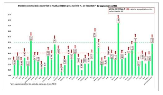 În intervalul 11.09.2021 (10:00) – 12.09.2021 (10:00) au fost raportate de către INSP 29 de decese (18 bărbați și 11 femei), ale unor pacienți infectați cu noul coronavirus, internați în spitalele din Bacău, Bihor, Caraș-Severin, Cluj, Constanța, Dâmbovița, Maramureș, Mehedinți, Prahova, Satu Mare, Sălaj, Sibiu, Teleorman, Timiș și Vaslui.