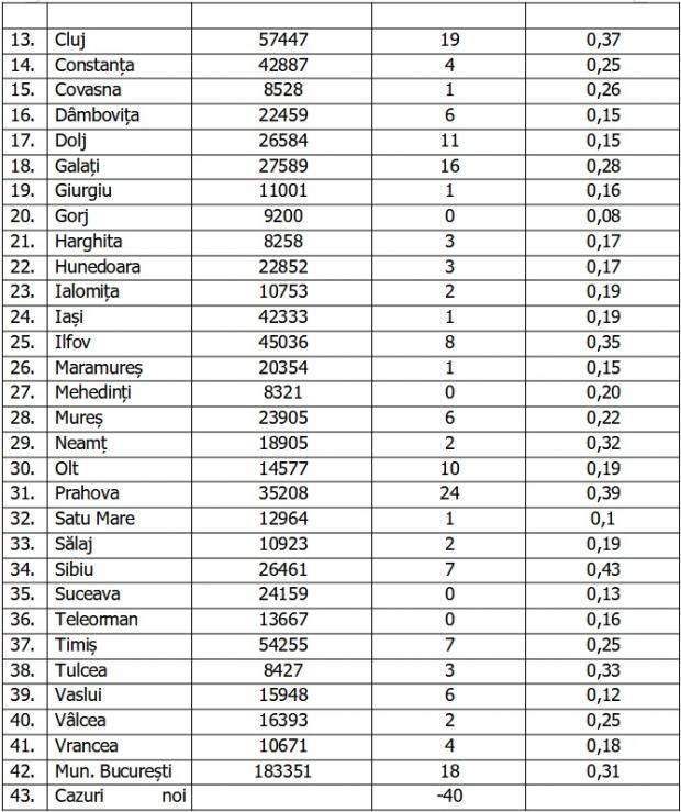 Distinct de cazurile nou confirmate, în urma retestării pacienților care erau deja pozitivi, 45 persoane au fost reconfirmate pozitiv.