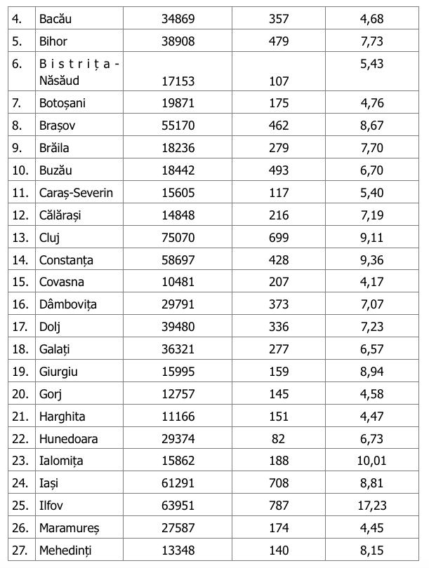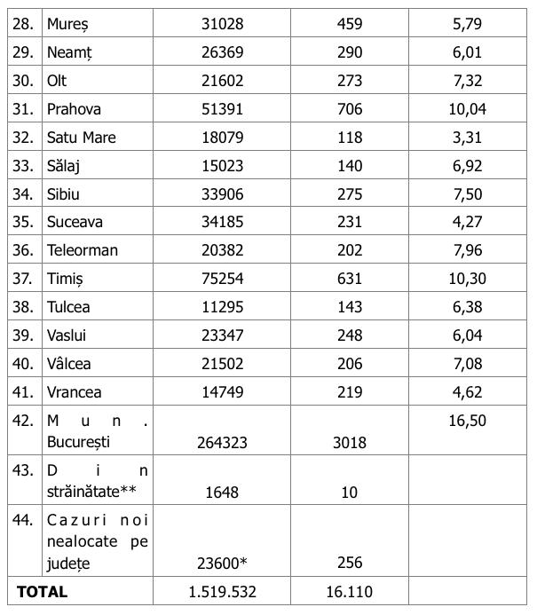 Bilanț COVID-19 din 21 octombrie 2021, în România. Distribuția pe județe