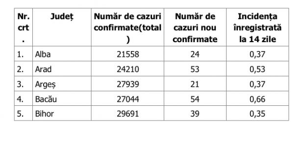 Coeficientul infectărilor cumulate la 14 zile, raportate la 1.000 de locuitori