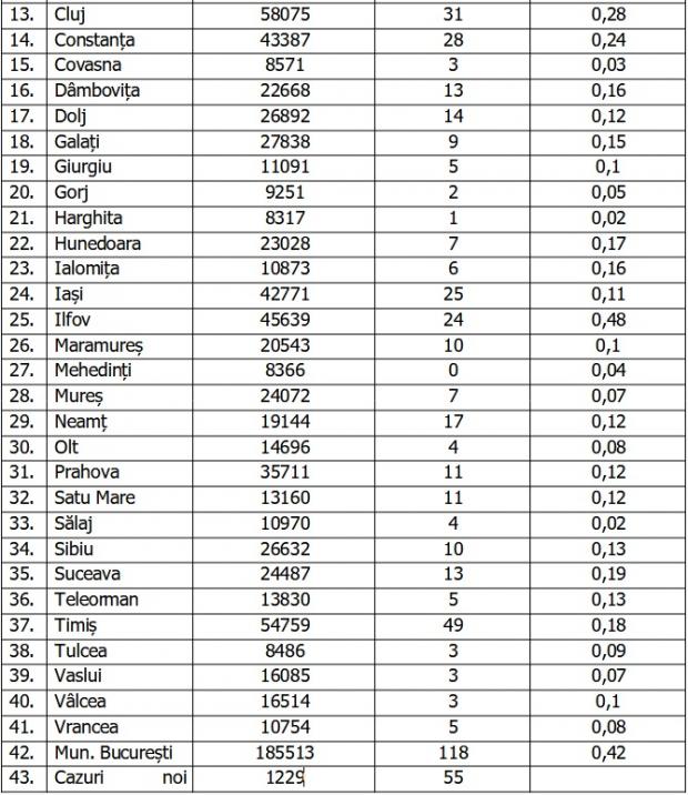 Distinct de cazurile nou confirmate, în urma retestării pacienților care erau deja pozitivi, 97 de persoane au fost reconfirmate pozitiv.
