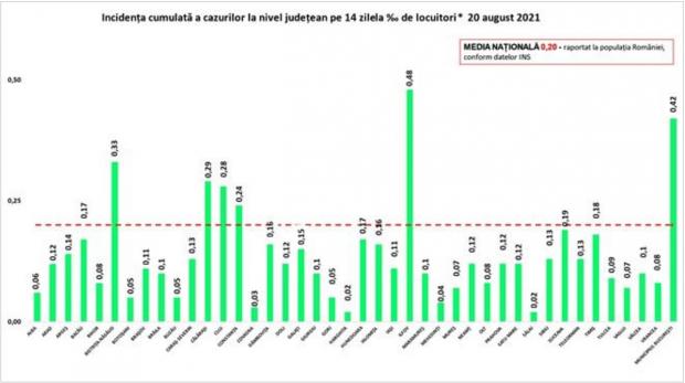 Bilanţ COVID-19 din 20 august 2021, în România. "Până astăzi, 20 august, pe teritoriul României, au fost confirmate 1.089.817 de cazuri de persoane infectate cu noul coronavirus (COVID – 19).