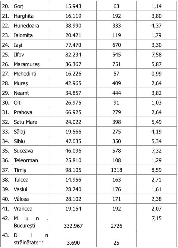 Bilanț COVID-19 din 20 ianuarie 2021, în România. Distribuția pe județe