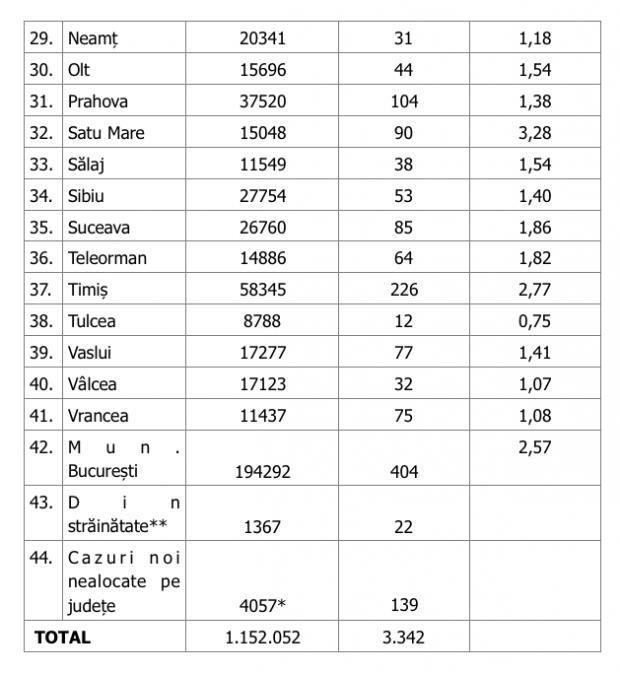 În urma testelor efectuate la nivel național, față de ultima raportare, au fost înregistrate 3.342 de cazuri noi de persoane infectate cu SARS – CoV – 2 (COVID – 19), acestea fiind cazuri care nu au mai avut anterior un test pozitiv.