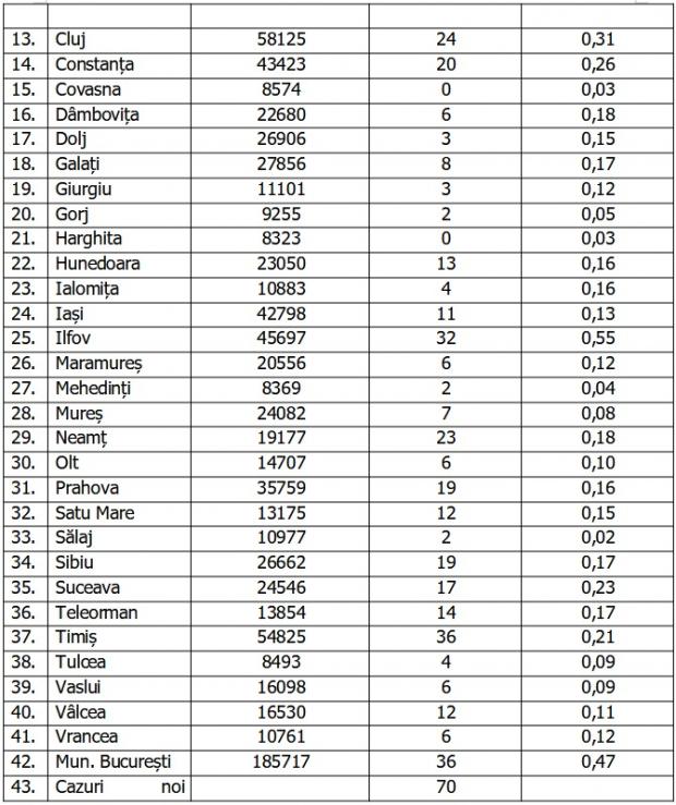 În urma testelor efectuate la nivel național, față de ultima raportare, au fost înregistrate 517 cazuri noi de persoane infectate cu SARS – CoV – 2 (COVID – 19), acestea fiind cazuri care nu au mai avut anterior un test pozitiv. Distinct de cazurile nou confirmate, în urma retestării pacienților care erau deja pozitivi, 58 de persoane au fost reconfirmate pozitiv.
