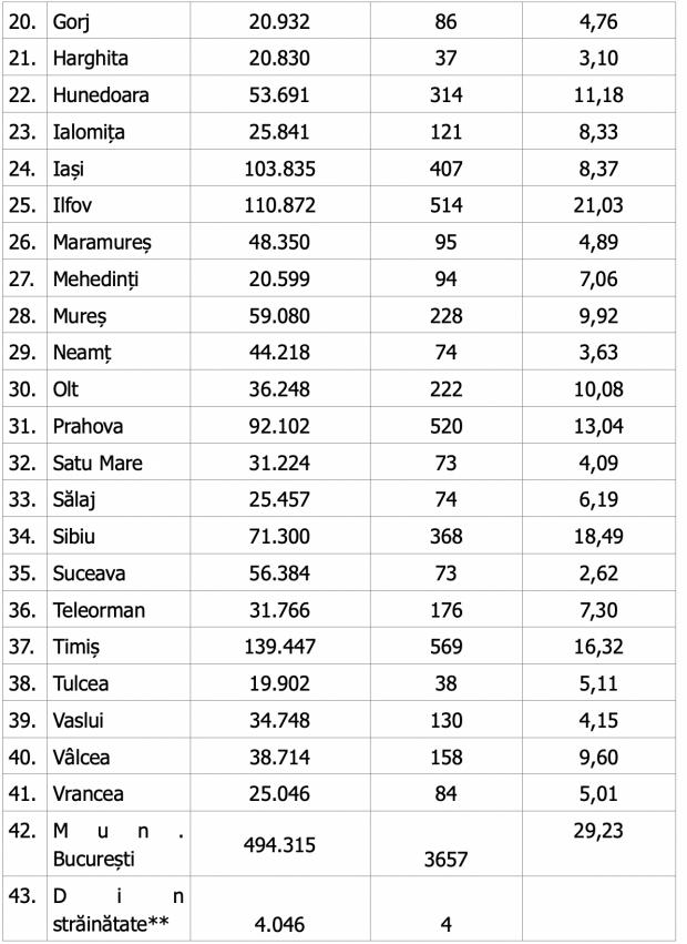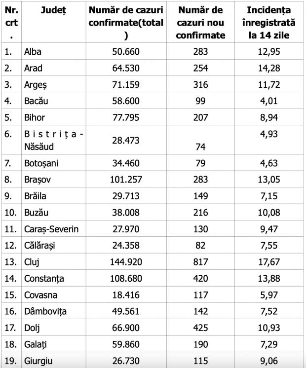 Bilanț COVID-19 din 23 februarie 2022, în România. Distribuție pe județe