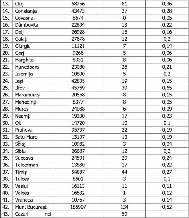 Distinct de cazurile nou confirmate, în urma retestării pacienților care erau deja pozitivi, 137 de persoane au fost reconfirmate pozitiv.
