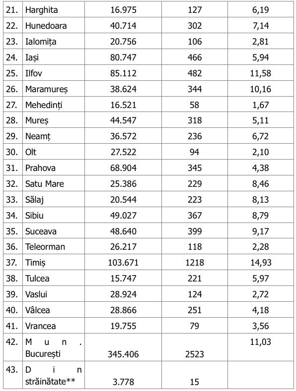 Bilanț COVID-19 din 25 ianuarie 2021, în România. Distribuția pe județe