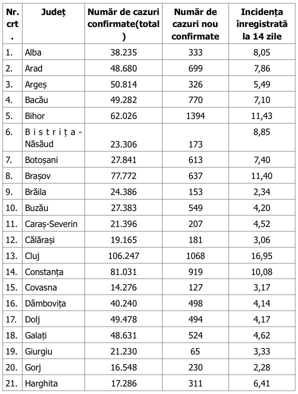 Distinct de cazurile nou confirmate, în urma retestării pacienților care erau deja pozitivi, 1.361 de persoane au fost reconfirmate pozitiv.