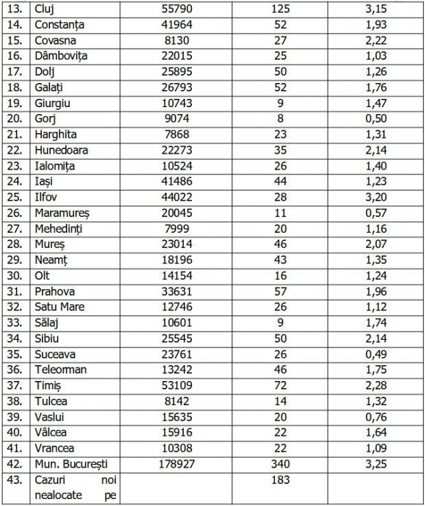 Distinct de cazurile nou confirmate, în urma retestării pacienților care erau deja pozitivi, 415 persoane au fost reconfirmate pozitiv.