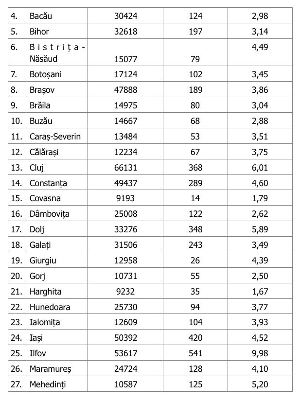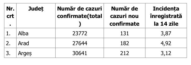 Bilanț COVID-19 din 4 octombrie 2021, în România. Distribuția pe județe