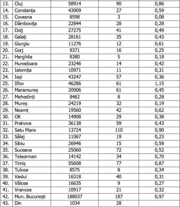 În ultimele 24 de ore au fost efectuate 16.107 teste RT-PCR (5.074 în baza definiției de caz și a protocolului medical și 11.033 la cerere) și 28.665 de teste rapide antigenice.