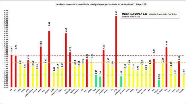 Bilanţ COVID-19 în România din 8 aprilie 2021. 172 de noi decese în 24 de ore