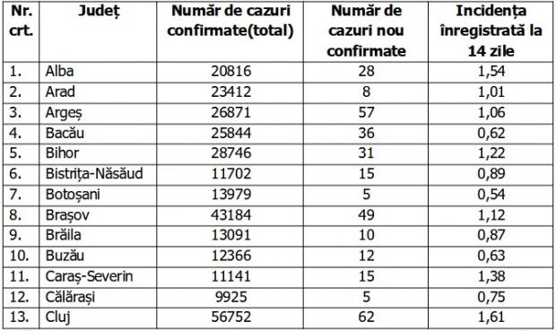 În ultimele 24 de ore au fost efectuate 14.654 de teste RT-PCR (5.524 în baza definiției de caz și a protocolului medical și 9.130 la cerere) și 5.809 teste rapide antigenice.