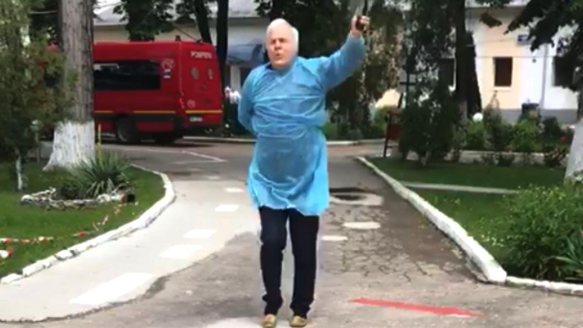 La ieșirea din spital, bunicul a dansat minute în șir, de bucurie că s-a vindecat și că se poate întoarce acasă cu nepoata pe care a crescut-o de mică.