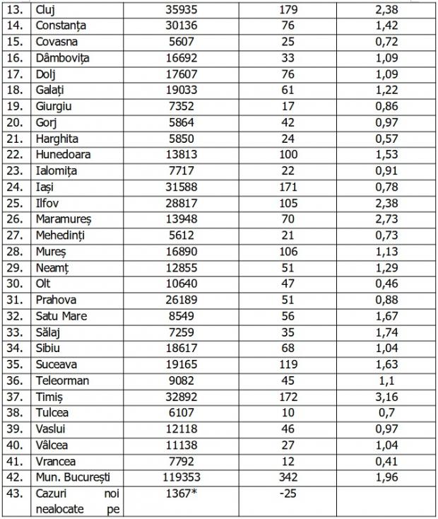 Toate decesele înregistrate sunt ale unor pacienți care au prezentat comorbidități. În unitățile sanitare de profil, numărul total de persoane internate cu COVID-19 este de 7.767.