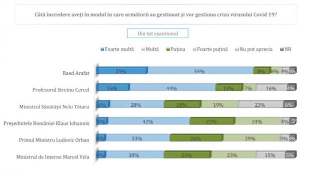 Românii au încredere în secretarul de stat în Ministerul Afacerilor Interne Raed Arafat, arată sondajul.