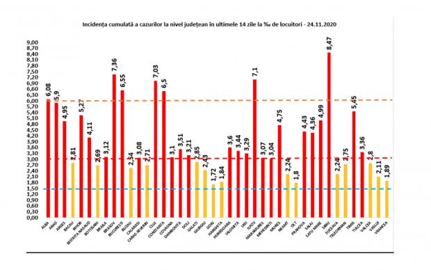 În intervalul 23.11.2020 (10:00) – 24.11.2020 (10:00) au fost raportate 196 de decese (129 bărbați și 67 femei), ale unor pacienți infectați cu noul coronavirus, internați în spitalele Alba, Argeș, Arad, Bacău, Bistrița-Năsăud, Botoșani, Brăila, Brașov, Buzău, Călărași, Caraș-Severin, Constanța, Dâmbovița, Dolj, Galați, Giurgiu, Gorj, Harghita, Hunedoara, Ialomița, Iași, Mehedinți, Mureș, Prahova, Sibiu, Suceava, Teleorman, Timiș, Tulcea, Vaslui, Ilfov și Municipiul București.