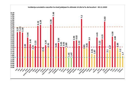 În intervalul 29.11.2020 (10:00) – 30.11.2020 (10:00) au fost raportate 138 de decese (78 bărbați și 60 femei), ale unor pacienți infectați cu noul coronavirus, internați în spitalele Alba, Argeș, Arad, Bacău, Bihor, Bistrița-Năsăud, Botoșani, Brăila, Brașov, Călărași, Caraș-Severin, Cluj, Constanța, Dâmbovița, Dolj, Giurgiu, Gorj, Harghita, Ialomița, Iași, Maramureș, Mehedinți, Neamț, Prahova, Sălaj, Sibiu, Suceava, Timiș, Vaslui, Ilfov și Municipiul București.