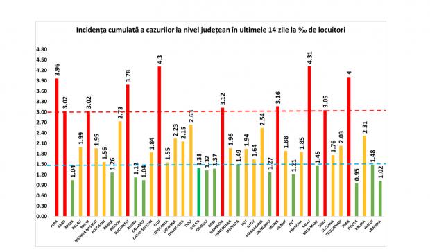 100 dintre decesele înregistrate sunt ale unor pacienți care au prezentat comorbidități, iar 3 pacienți decedați nu au prezentat comorbidități. În unitățile sanitare de profil, numărul total de persoane internate cu COVID-19 este de 11.236. Dintre acestea, 917 sunt internate la ATI.