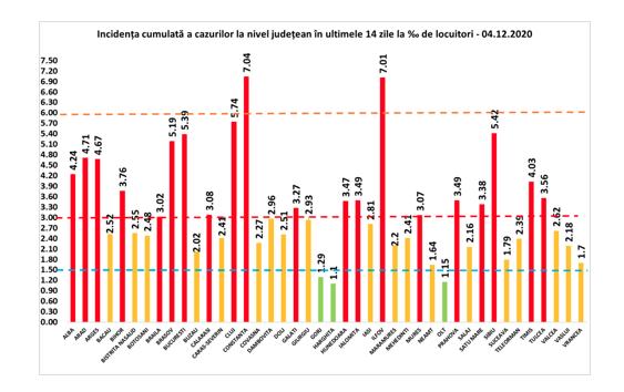 În intervalul 03.12.2020 (10:00) – 04.12.2020 (10:00) au fost raportate 176 de decese (109 bărbați și 67 femei), ale unor pacienți infectați cu noul coronavirus, internați în spitalele Alba, Argeș, Arad, Bacău, Bihor, Botoșani, Brăila, Brașov, Buzău, Călărași, Caraș-Severin, Cluj, Constanța, Covasna, Dâmbovița, Dolj, Galați, Gorj, Harghita, Hunedoara, Ialomița, Iași, Maramureș, Mureș, Prahova, Satu Mare, Sibiu, Suceava, Teleorman, Timiș, Vaslui, Vrancea, Ilfov și Municipiul București.