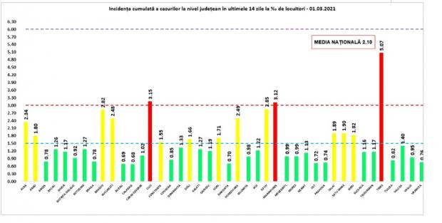 Judete în scenariul roșu: Timiș - 5,07 la mie, Cluj - 3,15 la mie, Maramureș - 3,12 la mie