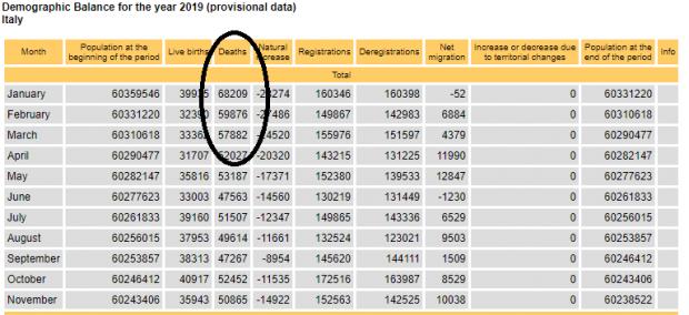 Date ale ISTAT apărute în publicația italiană money.it arată că Italia se confruntă cu un număr enorm de decese în fiecare an.