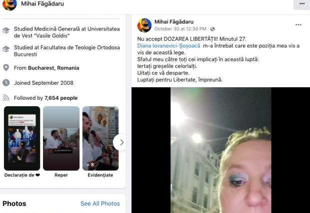 În toată această perioadă de pandemie, Făgădaru s-a numărat printre promotorii mesajului antivaccin, a luat parte la manifestațiile împotriva măsurilor de protecție, iar în ultima sa postare pe contul de Facebook din 30 octombrie, a postat un video de la un protest împotriva certificatului Verde, din Piața Universității din București. Contul acestuia e plin de filmulețe și mesaje antivaccin sau anti măsuri de protecție.