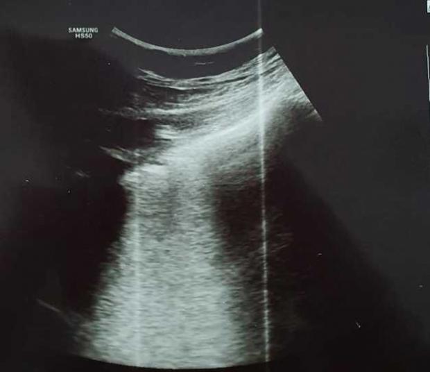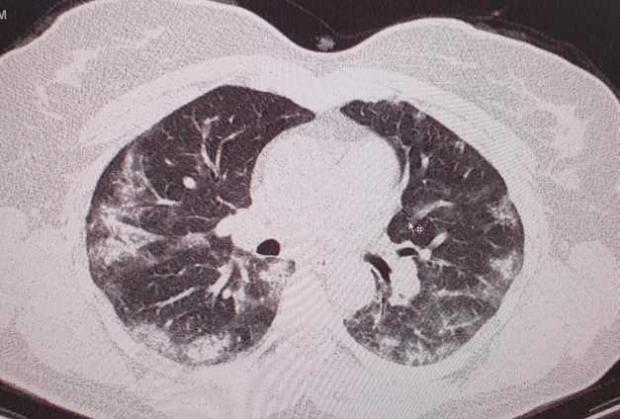 "Imagine de ecografie pulmonară cu o bandă albă în spatele pleurei -Linii B confluente- sugestivă pentru inflamaţia alveolo-interstiţială", a scris medicul.