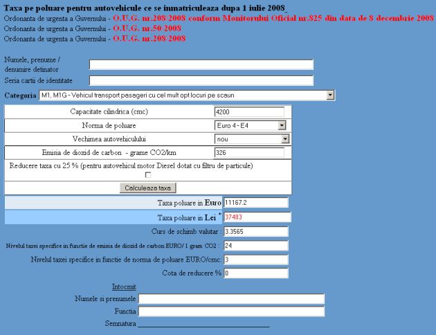 Pentru un Mercedes Benz nou şi cu motor diesel de peste 2.000 de centimetri cubi Euro 4, valoarea triplată va fi de aproape 2.800 de euro. Cumpărătorul unui Opel Vectra nou cu motor pe benzină de 2,2 litri va achita o taxă de circa 3.000 de euro.