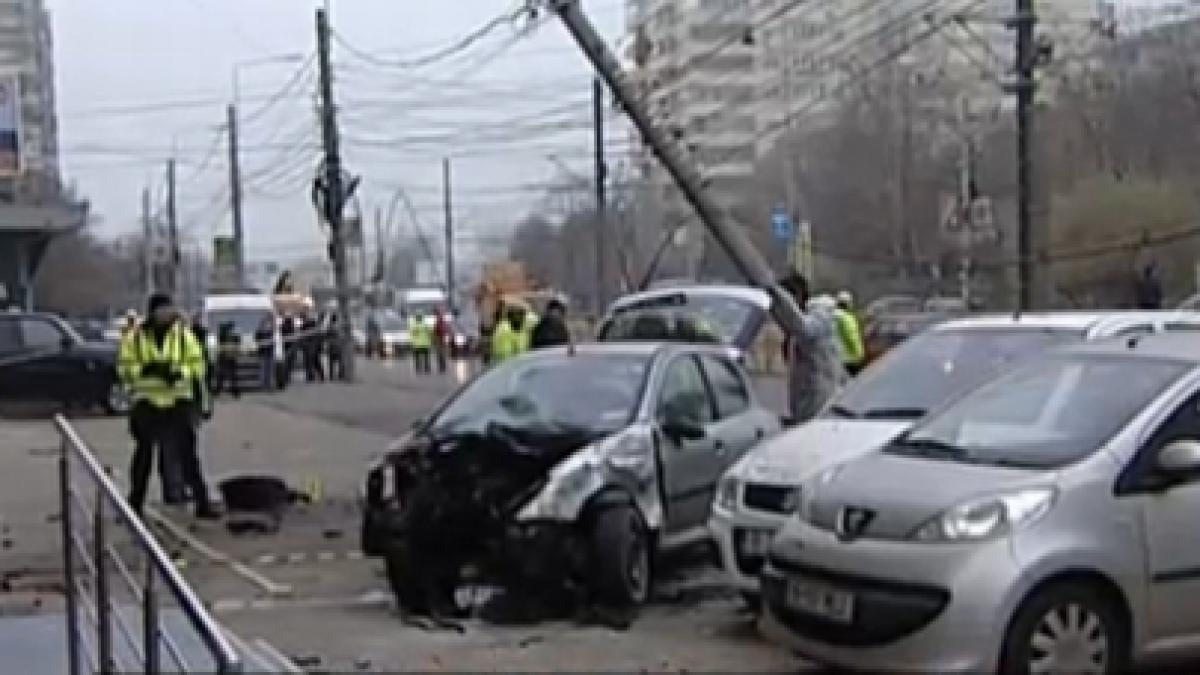 Accidentul s-a produs vineri, în jurul orei 8.00, după ce şoferul maşinii a pierdut controlul volanului, la coborârea de pe Podul Grant, şi a intrat cu viteză într-un stâlp aflat pe trotuar.