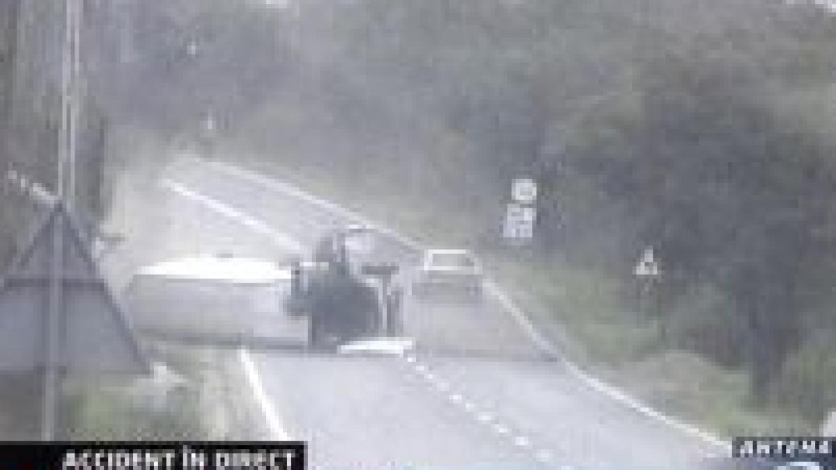 s-a răsturnat, iar şoferul a fost aruncat prin parbriz la câţiva